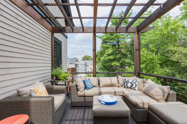 Shade cloths and retractable canopies can provide additional overhead protection. For a more open, less confining feel, think about designing a gabled or arched roof, or even eliminating any sort of roof altogether.