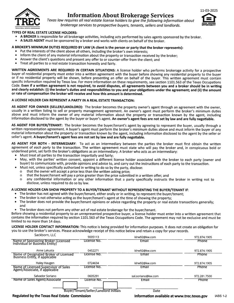 TREC Information About Brokerage Services